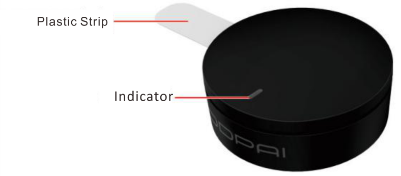 Remove the transparent plastic strip from the wireless remote, press the remote, and the indicator light (blue) will turn on, indicating that the wireless remote is ready for use.