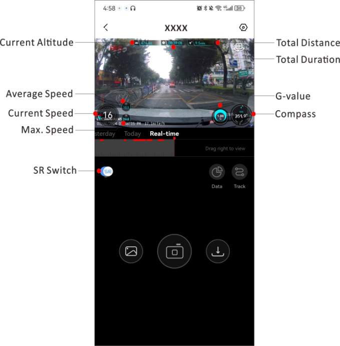 When the dash cam is used in an outdoor open area, it can receive GPS signals. After the GPS signal is successfully located, the GPS information will be recorded in your recorded video. You can view various information such as time, speed, altitude, direction, and driving track in the DDPAI App.